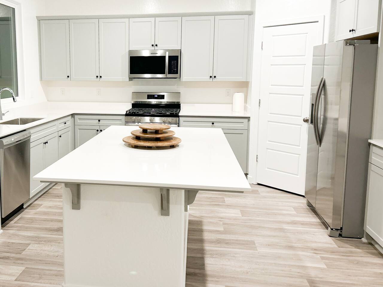 The kitchen features